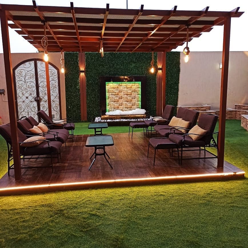 تنسيق الحدائق بالجلسات ومظلات وبرجولات حدائق الدمام الخبر القطيف