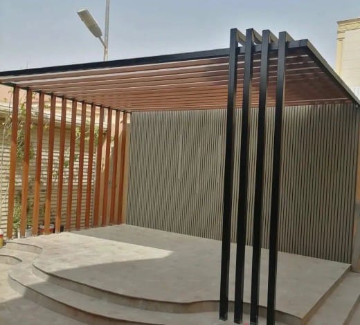 - كما يمكننا تركيب المظلات المصنوعة من مادة الحديد مع إمكانية تغطيتها بألواح اللكسان.