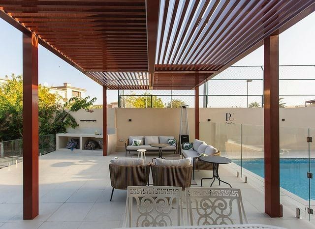 - أيضا عمل برجوله خشب ، يحقق تصميم ديكوري خارجي متألق .